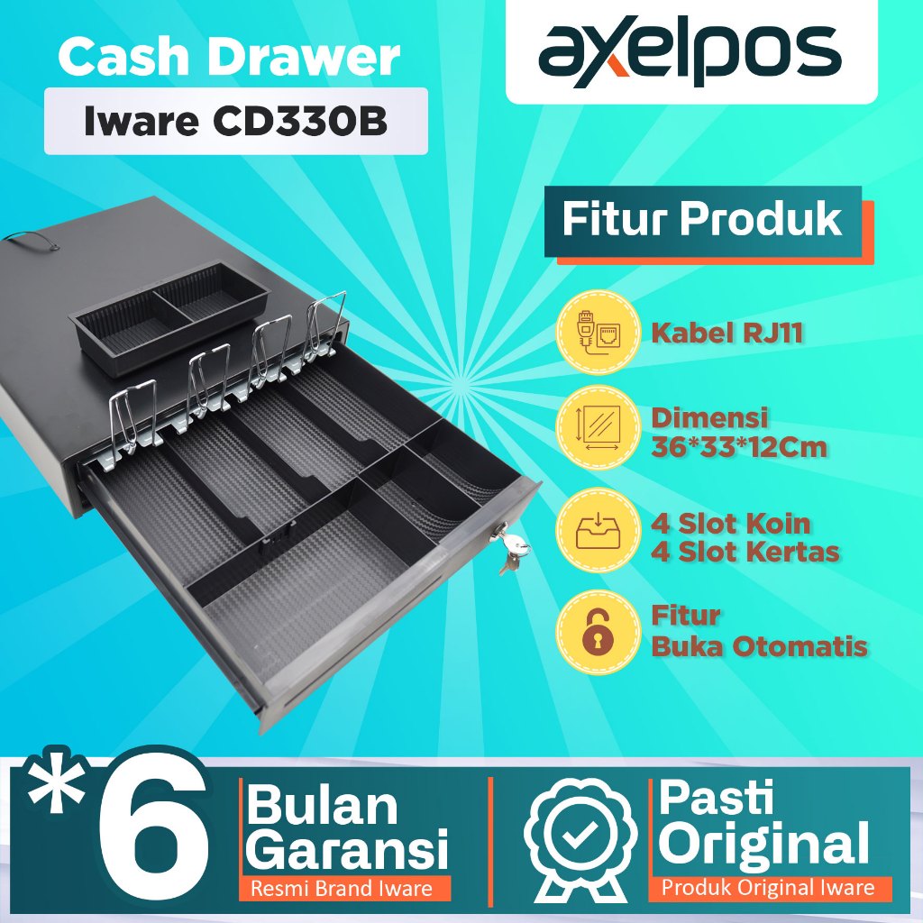 Axelpos CASH DRAWER MINI LACI UANG KASIR 4 SLOT IWARE CD-330