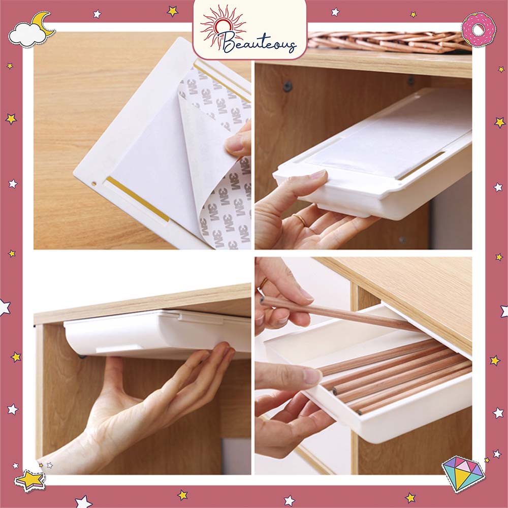 Laci Meja Tempel Rak Bawah Meja Ambalan Tambahan Kotak Penyimpanan