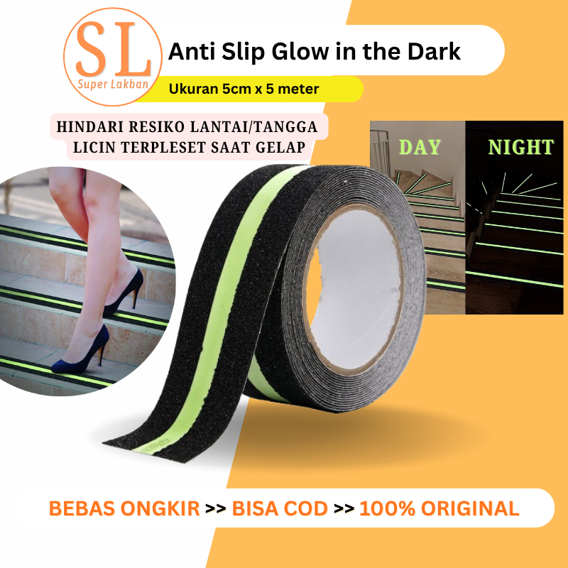 Lakban Anti Licin Tangga Stiker Glow In The Dark Isolasi Fosfor Nyala Terang Saat Gelap Anti Slip Safety Walk Tape