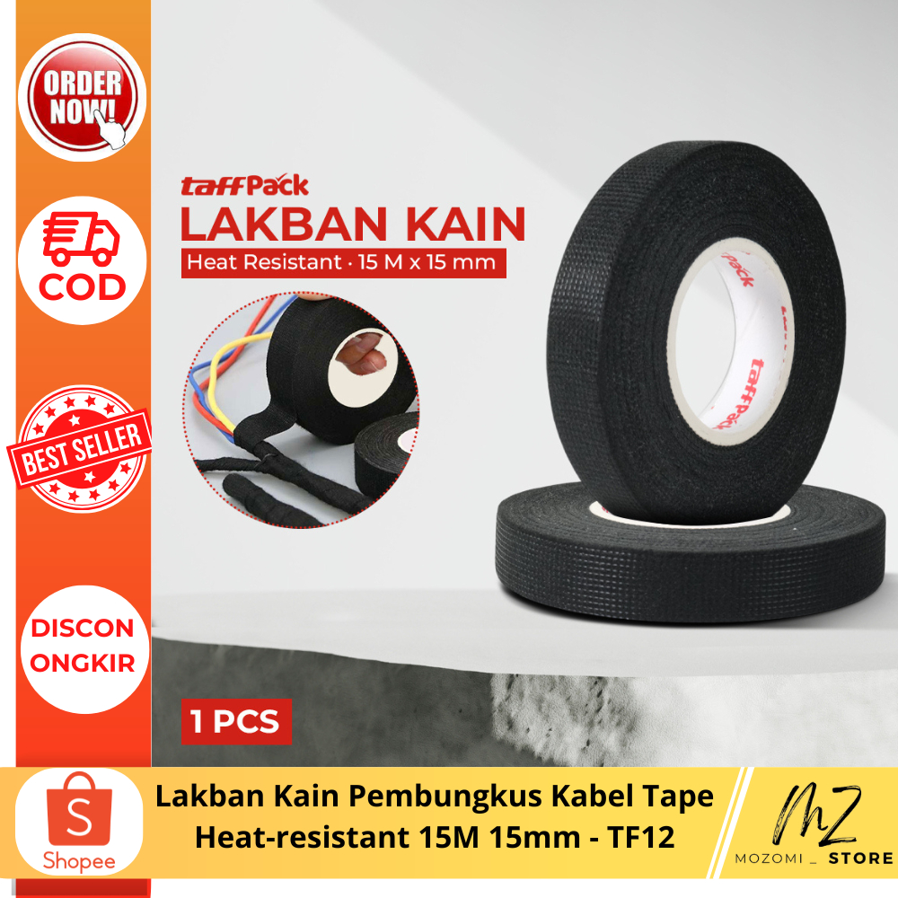 Lakban Kain Pembungkus Kabel Tape Heat-resistant 15M 15mm /Pembungkus Kain Kabel Listrik Tahan Panas