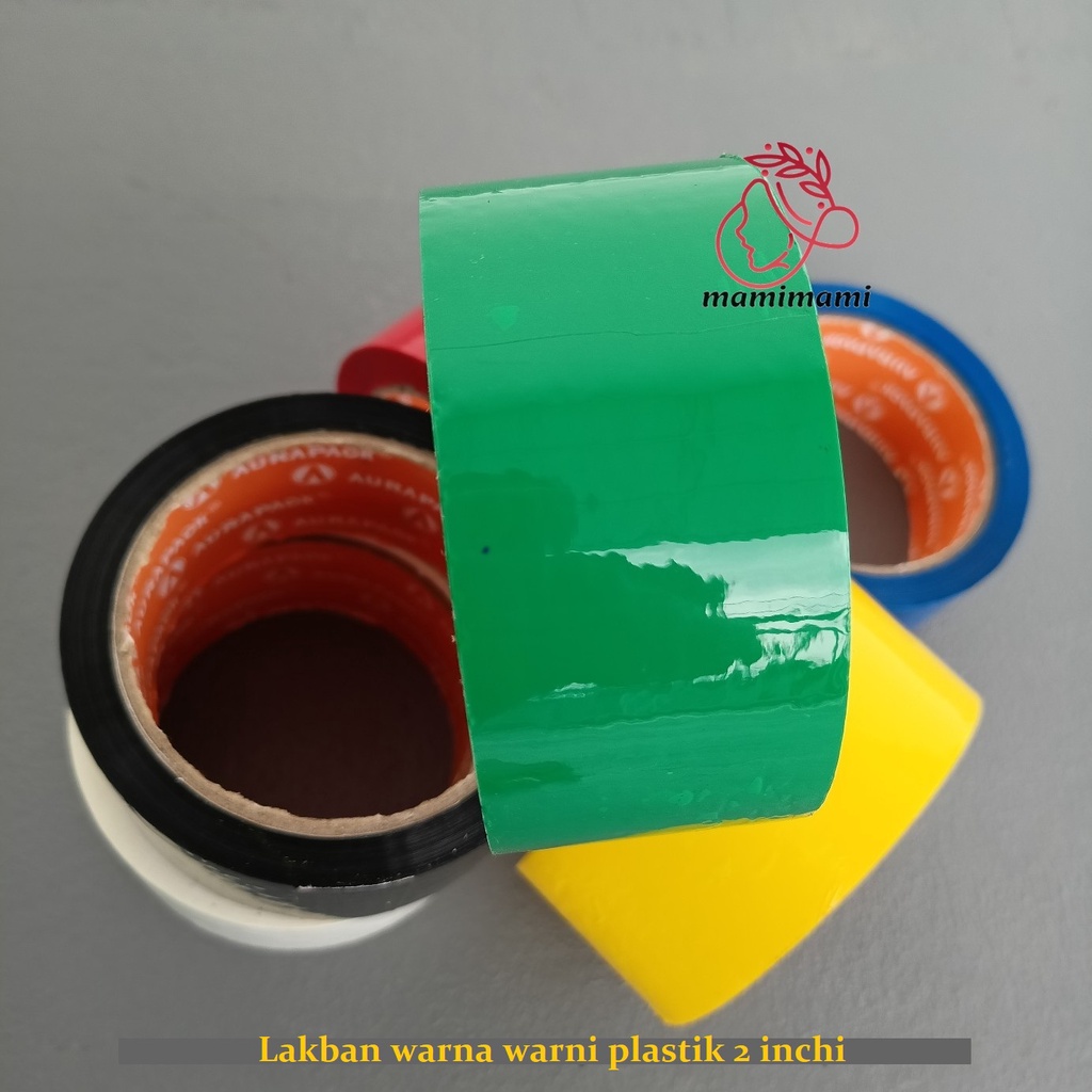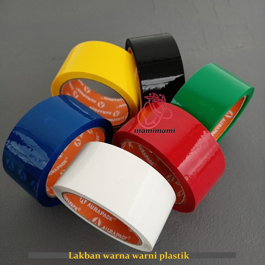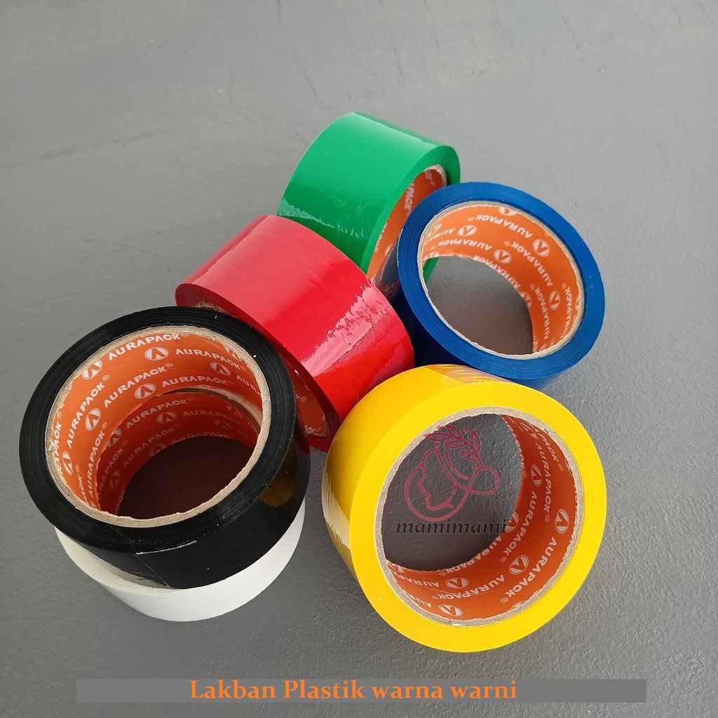 Lakban Warna Warni Aurapack OPP plastik 2 inch 55Y Hitam Biru HIjau Putih Kuning Merah