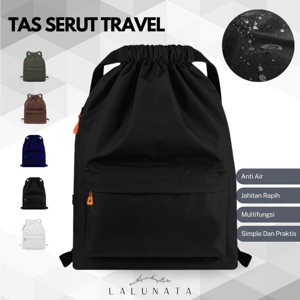 Lalunata - Tas Serut Perlengkapan Haji Umroh Anti Air Multifungsi Tali Webing Pria Wanita