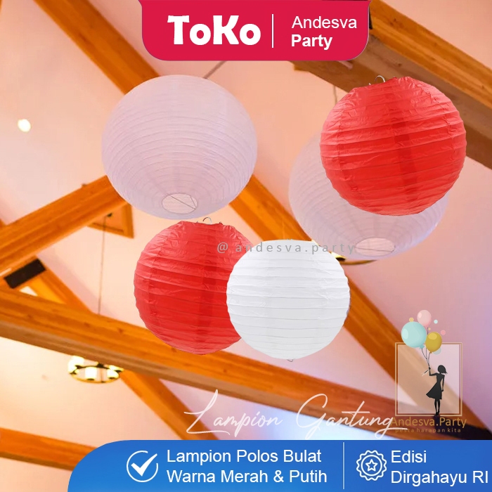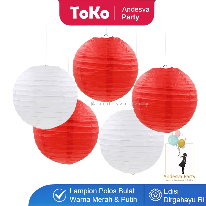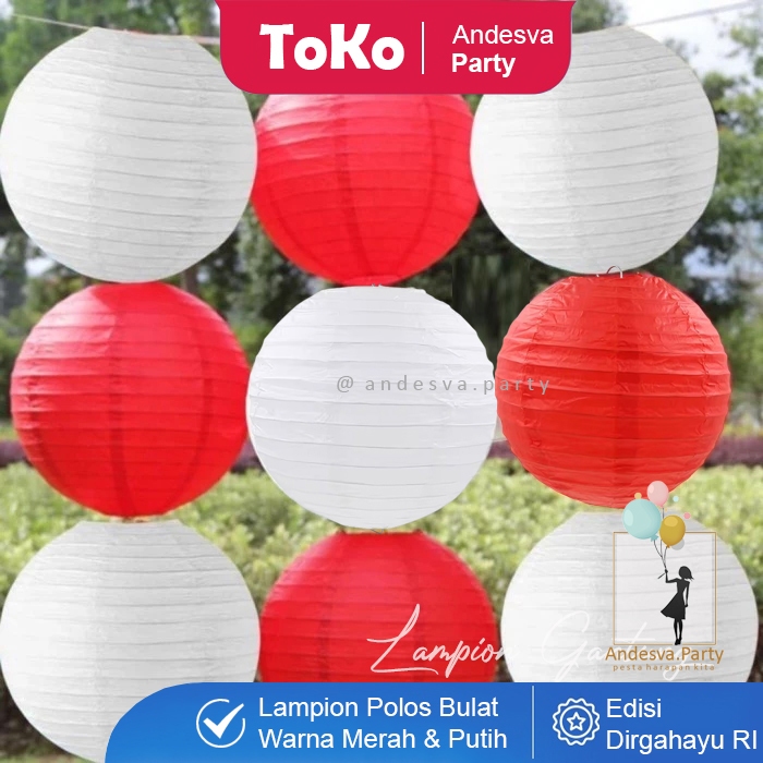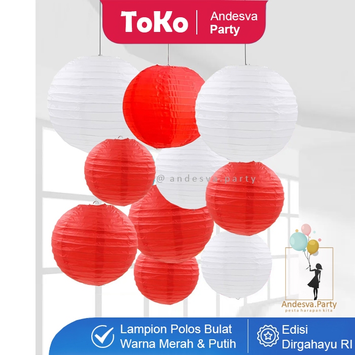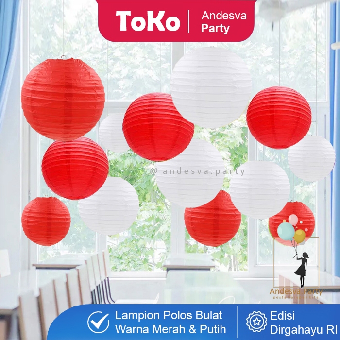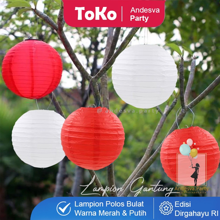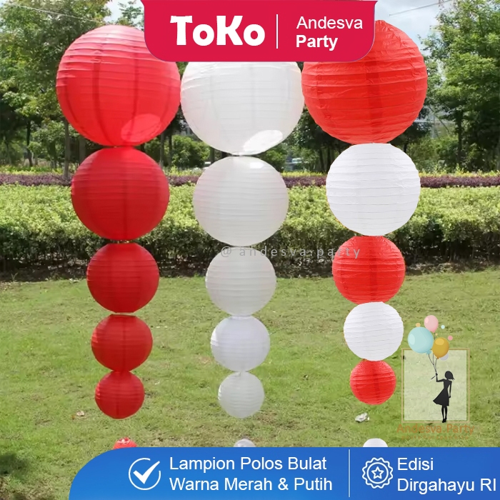 Lampion Gantung Merah Putih / Lampion Bulat Dekorasi Gantungan HUT RI 17 Agustus / Lampion Polos