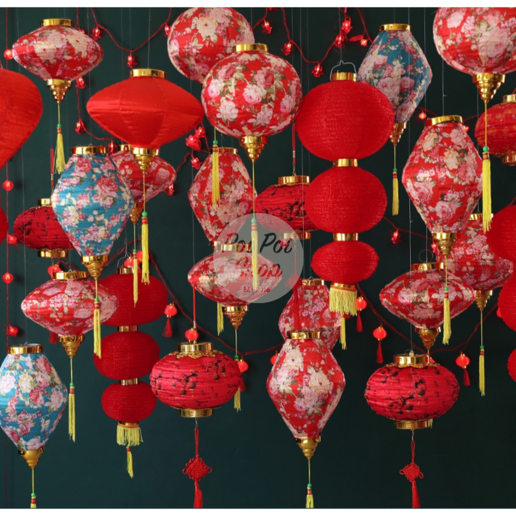 Lampion Vietnam 12in 30cm Motif Bunga Imlek 2024 Dekor Cafe Rumah Motif Kain China Dekorasi Tahun Baru Cina Lantern Berkualitas Dekorasi Rumah Kualitas Terbaik