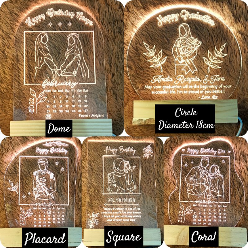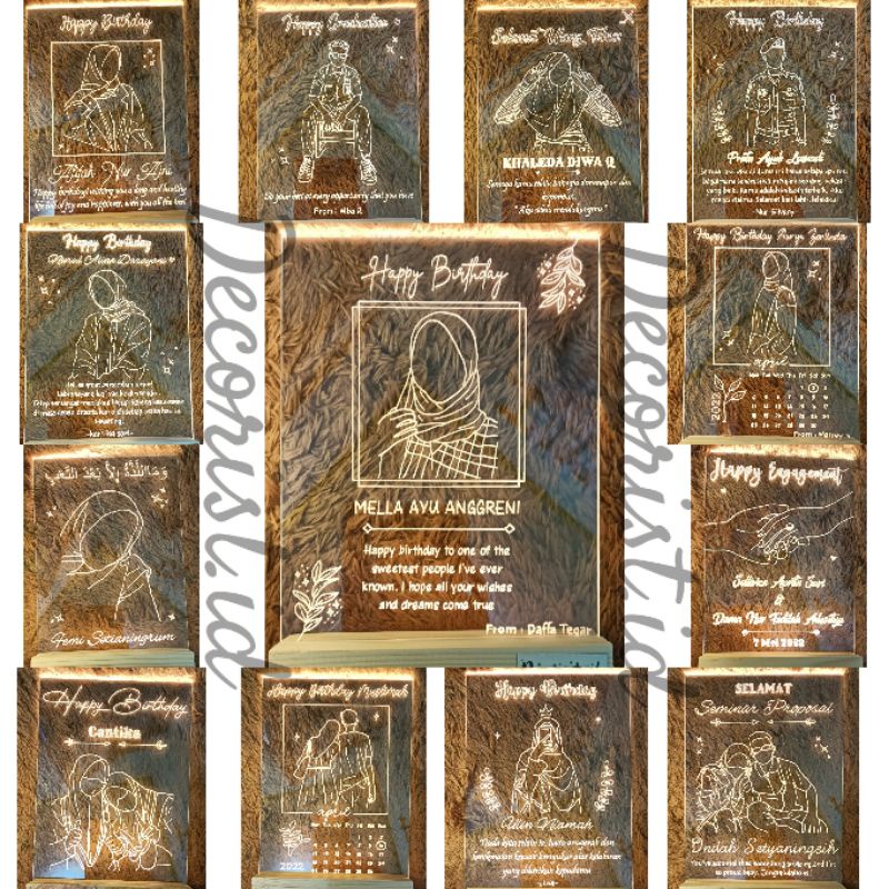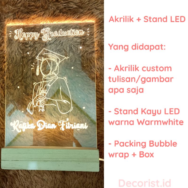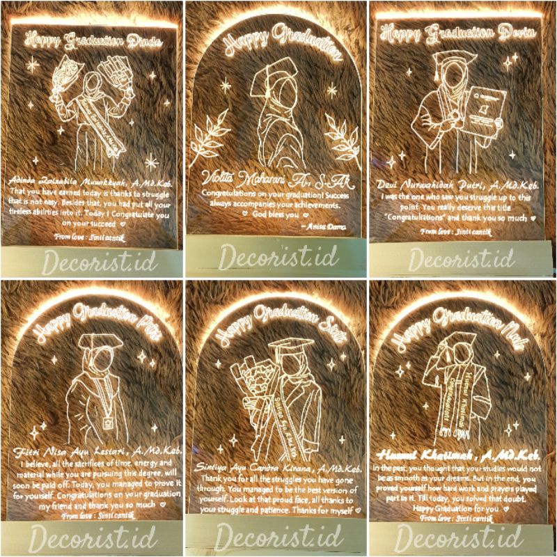 Lampu Akrilik Led Custom Ukuran A5 Lampu Hias Kamar Tidur Kado Wisuda Ultah Gift