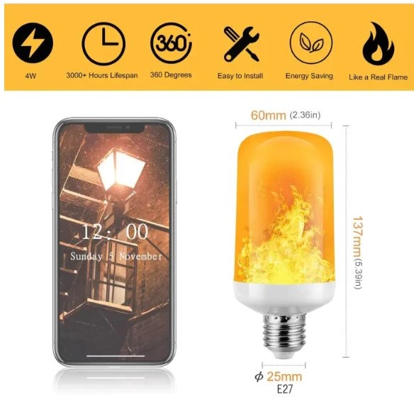 Lampu Api LED Obor 3 Mode 9 Watt ( 3Watt + 3Watt + 3Watt ) / Lampu Dekorasi Cafe / Led Flame Fire