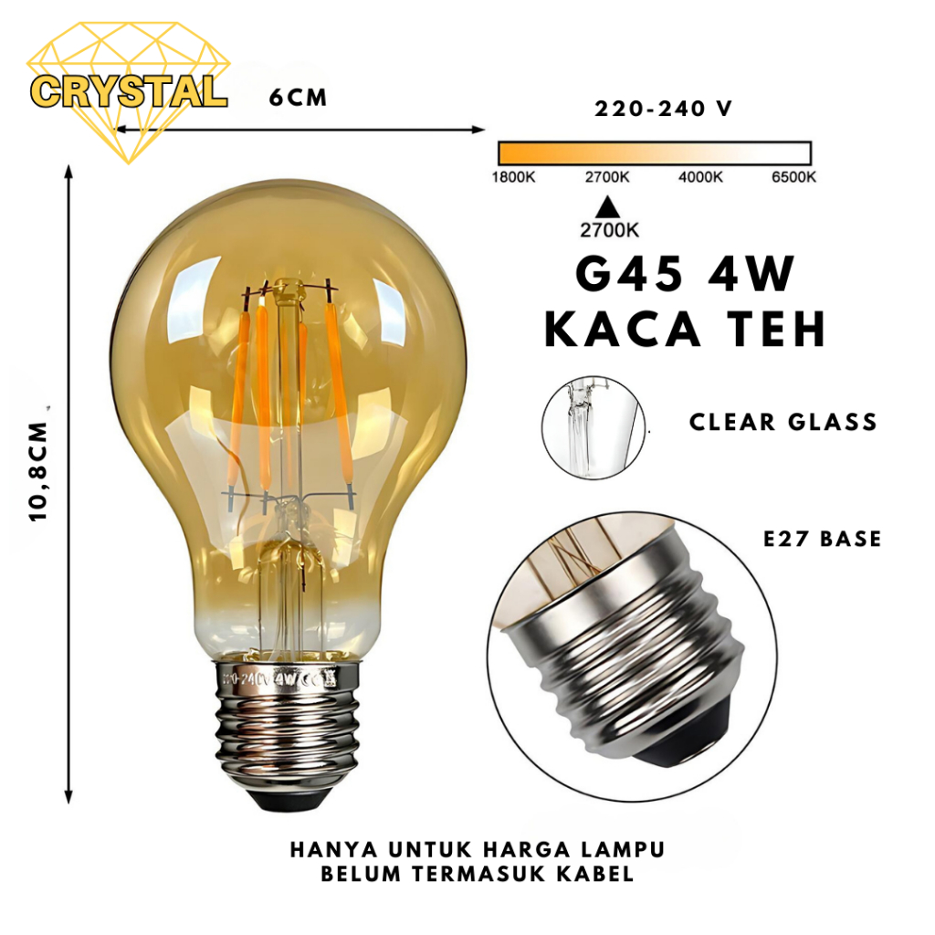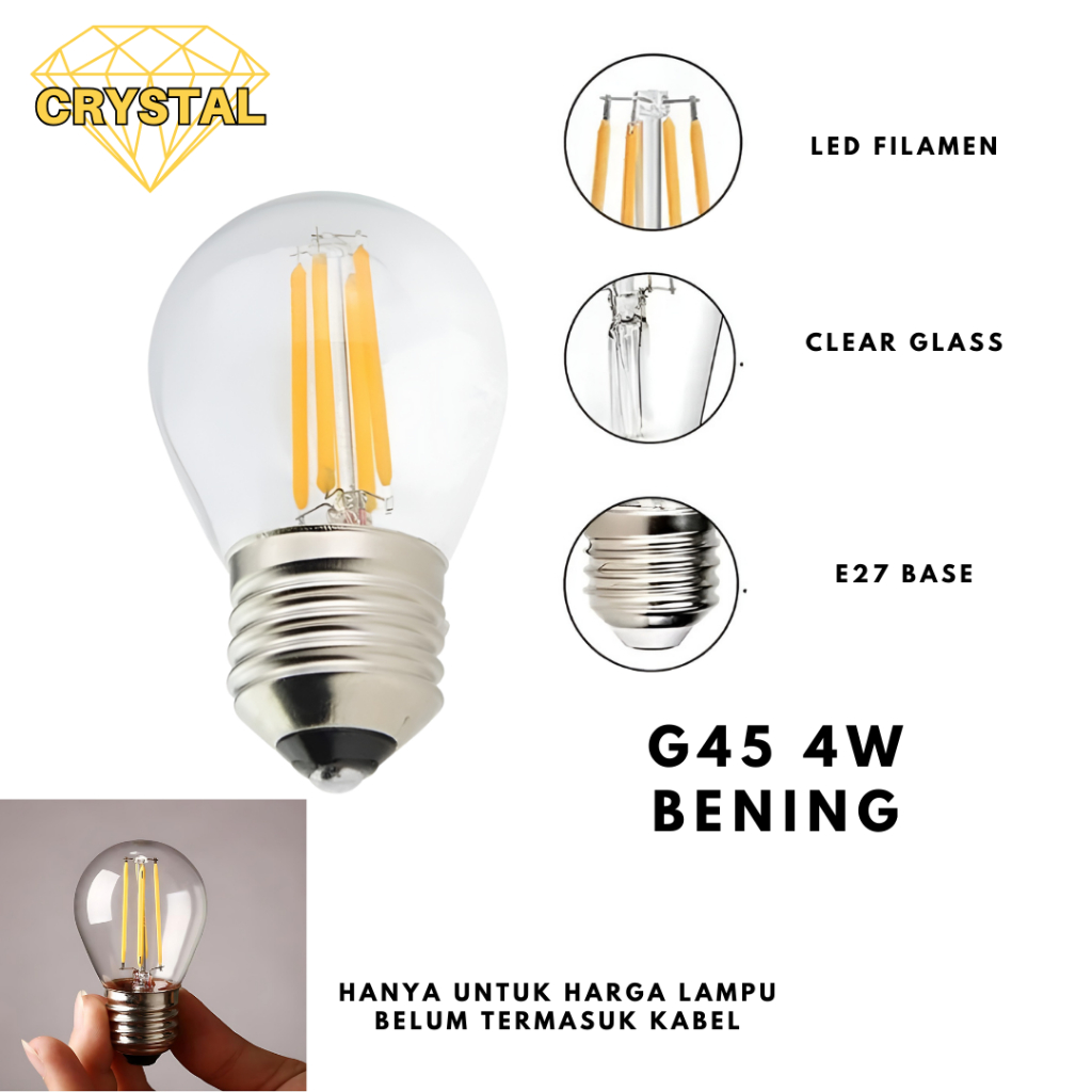Lampu Filamen LED 4W Filamen Edison 4W Bohlam Cafe G45 Cahaya Kuning