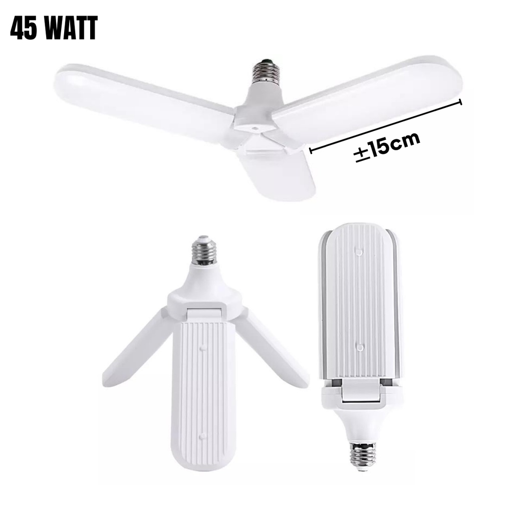 Lampu Bohlam Lipat Mini Model Kipas 3 Baling E27 45W 30W Mini Fan Blade LED Bulb 45 Watt 30 Watt Lampu Hias Ruangan Tamu Kamar Tidur