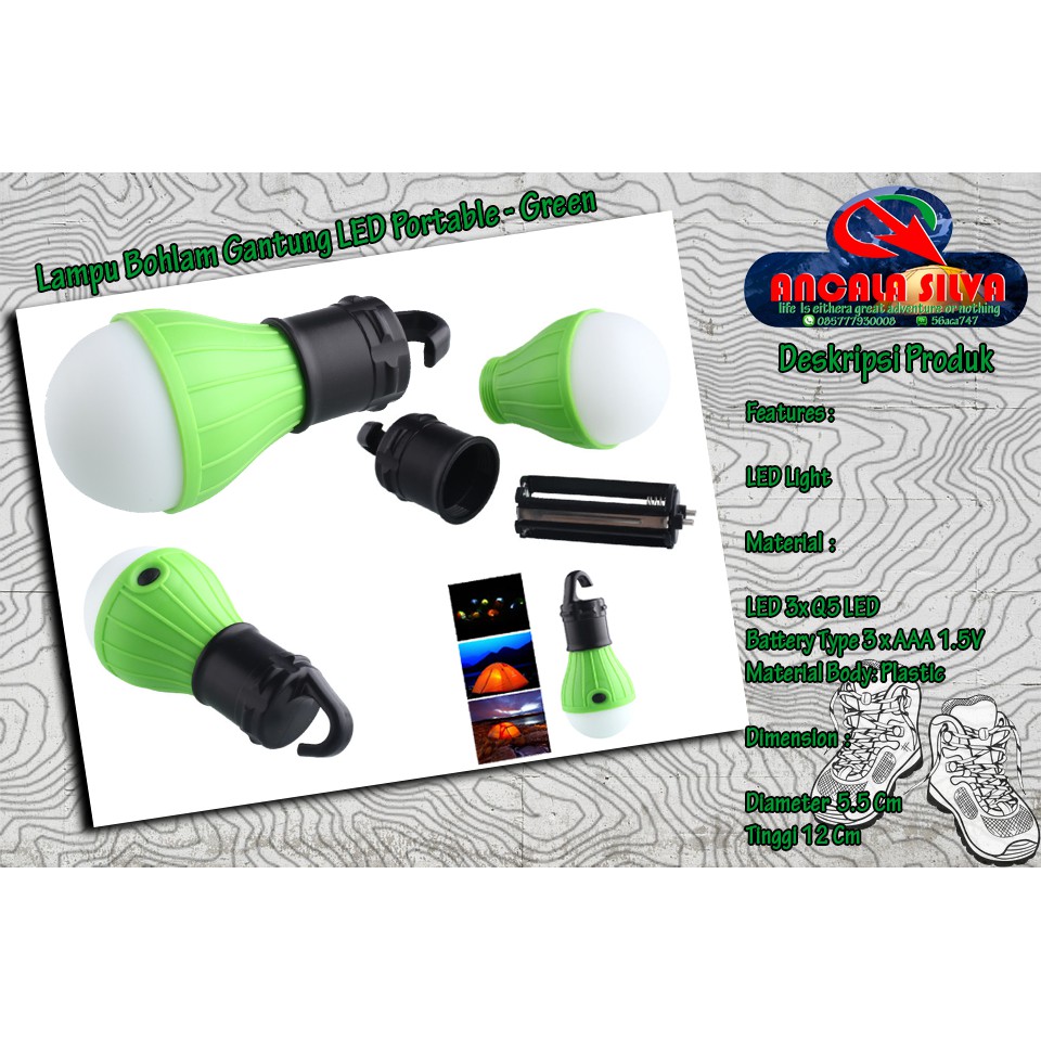 Lampu Camping Bohlam Gantung LED Portable - Green