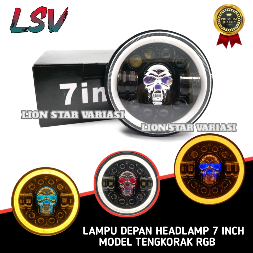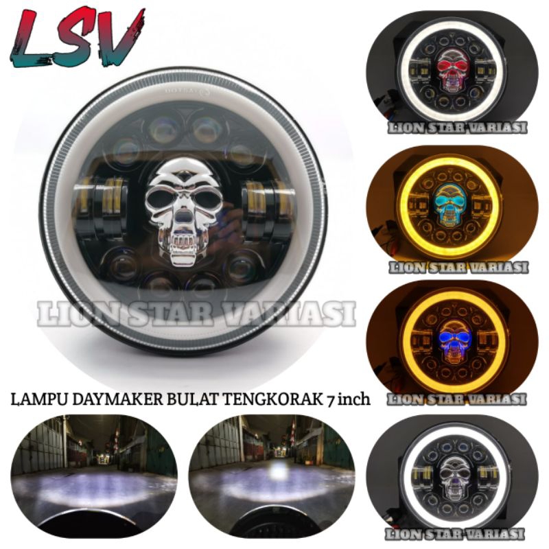 Lampu Depan 7 inch Model Bulat Tengkorak Headlamp Utama 7 inch Mobil Motor TAFT CARRY KATANA NINJA