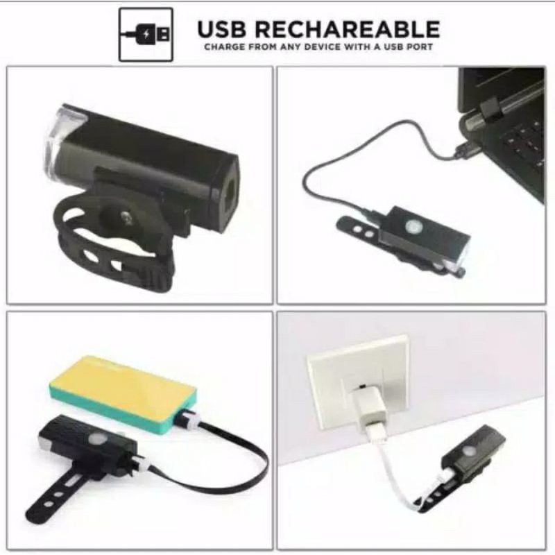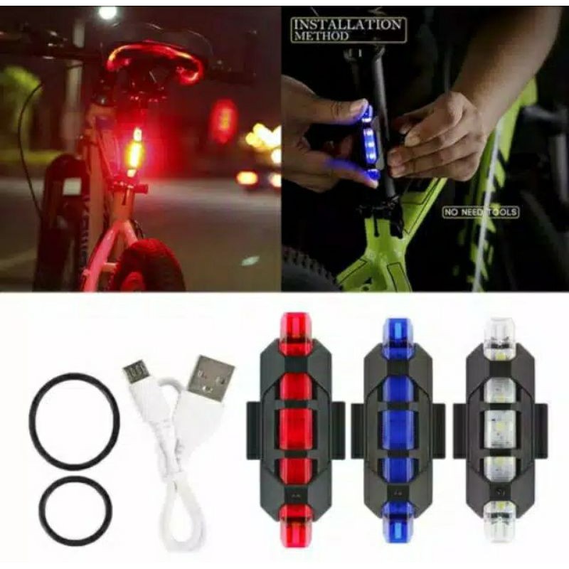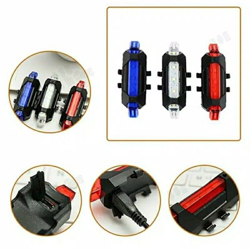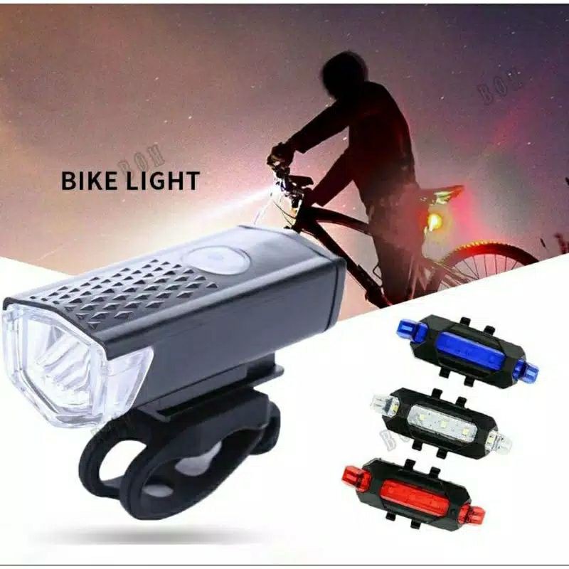 Lampu Depan + Belakang Sepeda Rechargeable Waterproof - Lampu Sepeda Led