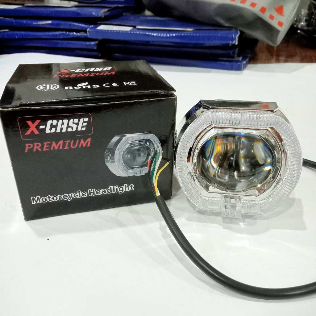 Lampu Depan Biled Cut Off Mini 2.5inch Lampu Tembak Projie Jauh Dekat Putih Kuning Jauh Dekat Putih Putih plus Ring Shroud dan Devil Eye Billed Projie 2.5Inch