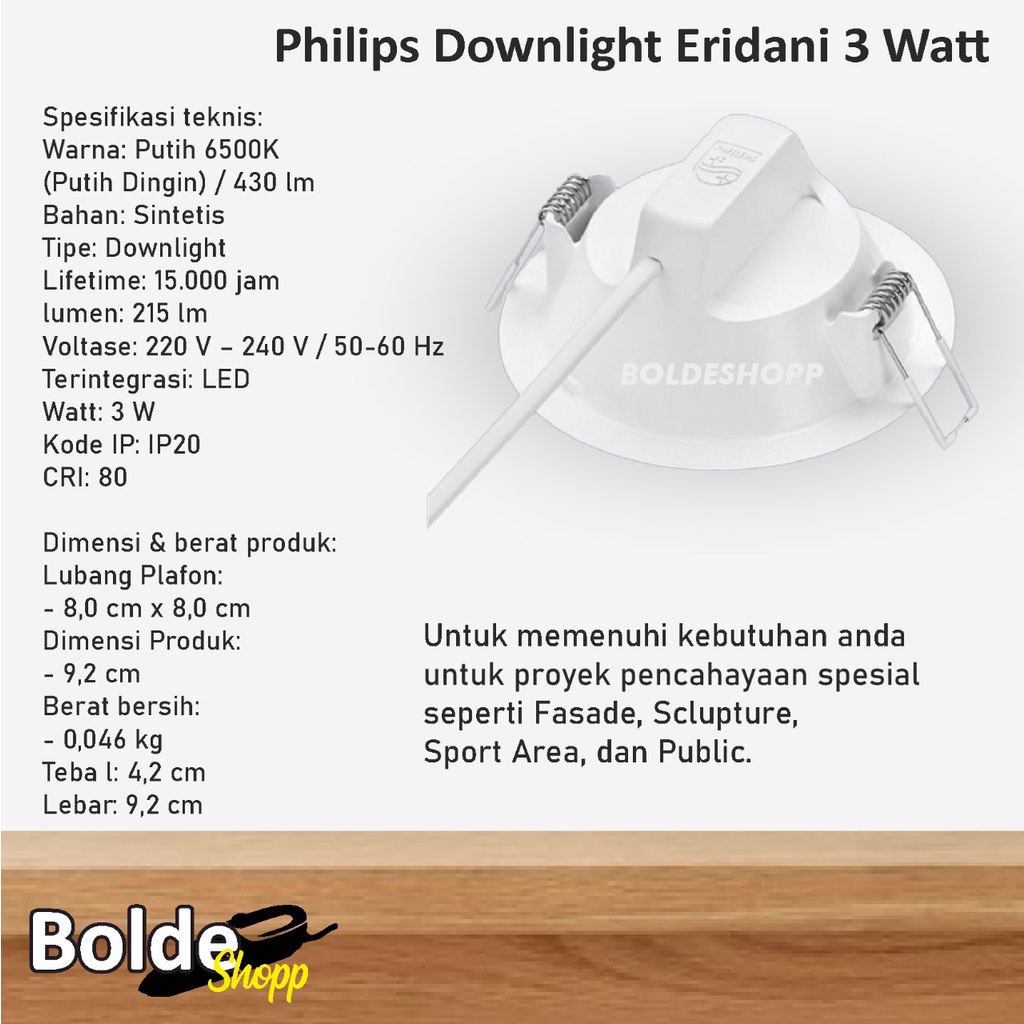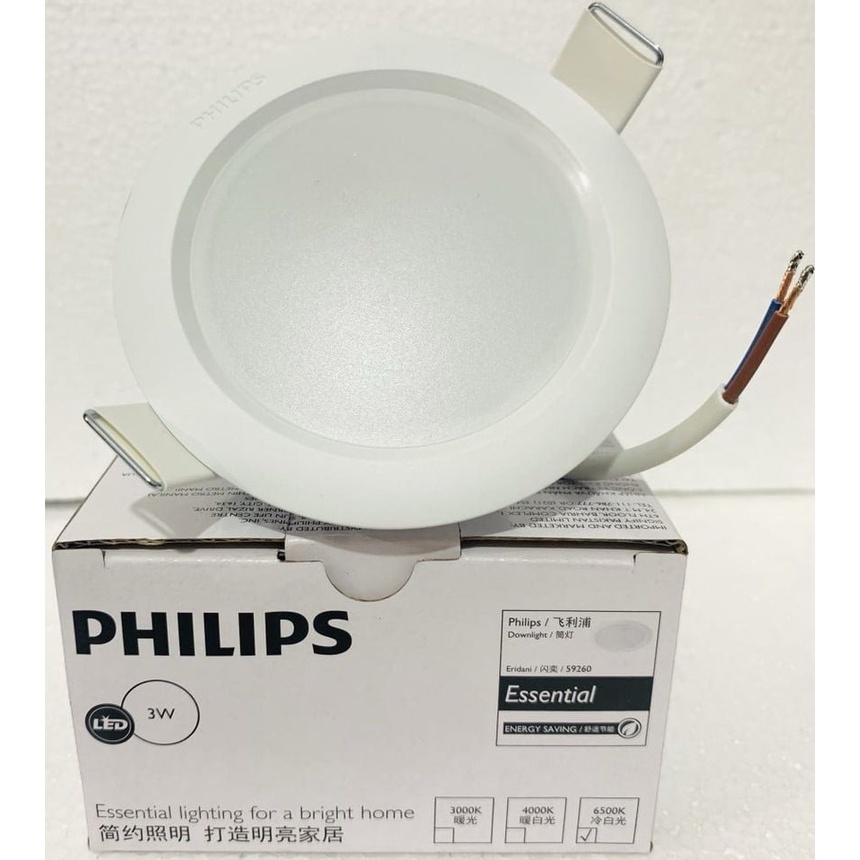 Lampu Downlight LED Philips Eridani 3watt 3w Putih Kuning Bulat Lampu Plafon