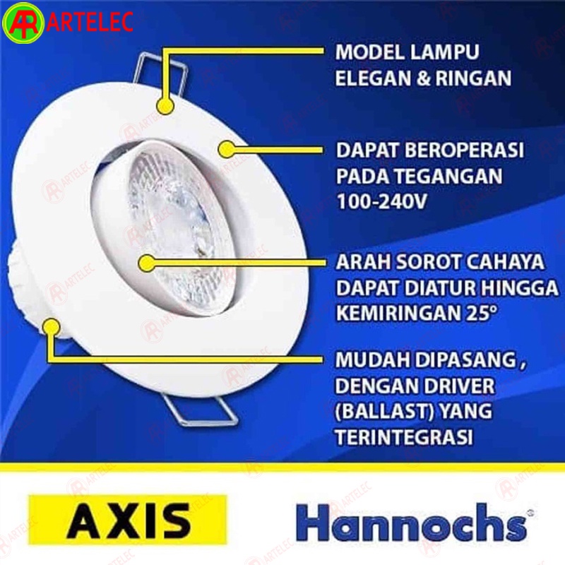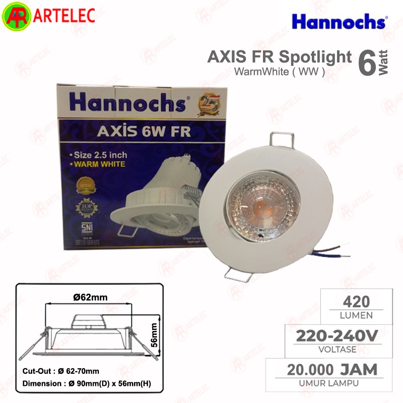 Lampu Downlight Spot light Hannochs Axis FR 6W | Lampu sorot bulat WW Kuning