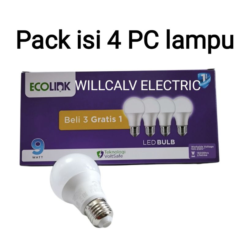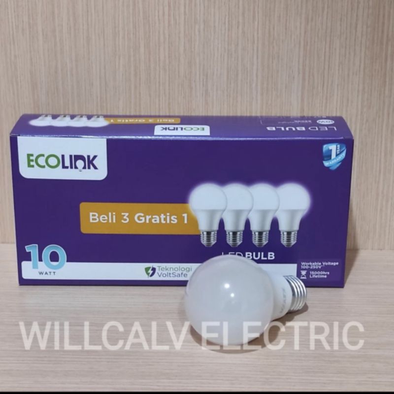 Lampu ECOLINK led bulb Multipack 10W isi 4 (3+1) cahaya putih 6500K / Lampu ECOLINK led bulb 10W