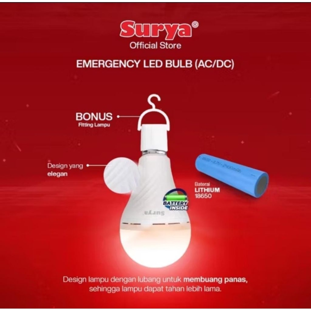 Lampu Emergency LED Bulb Bohlam Surya New Magic AC / DC 9W / 12W / 18W Cahaya Putih
