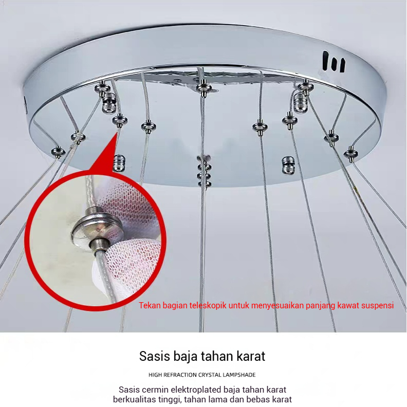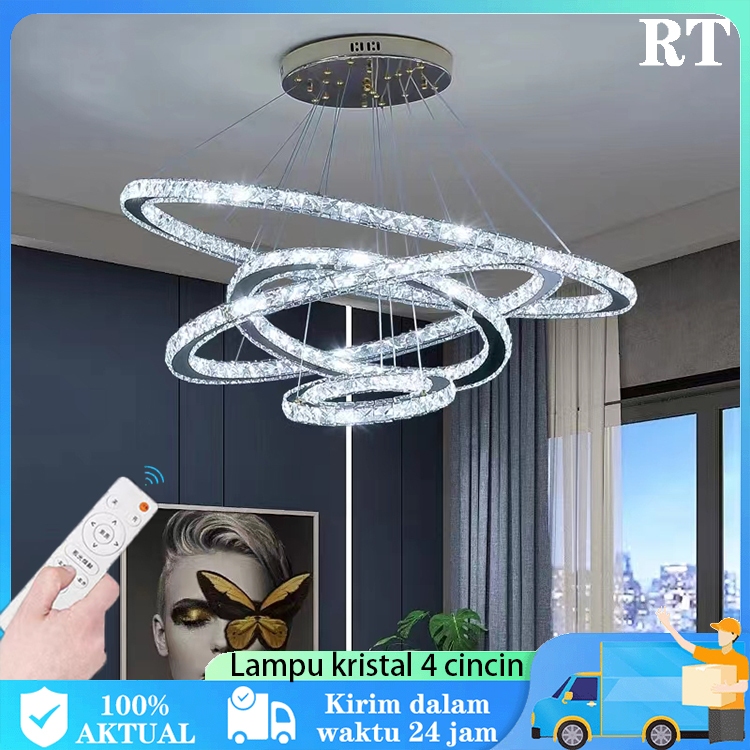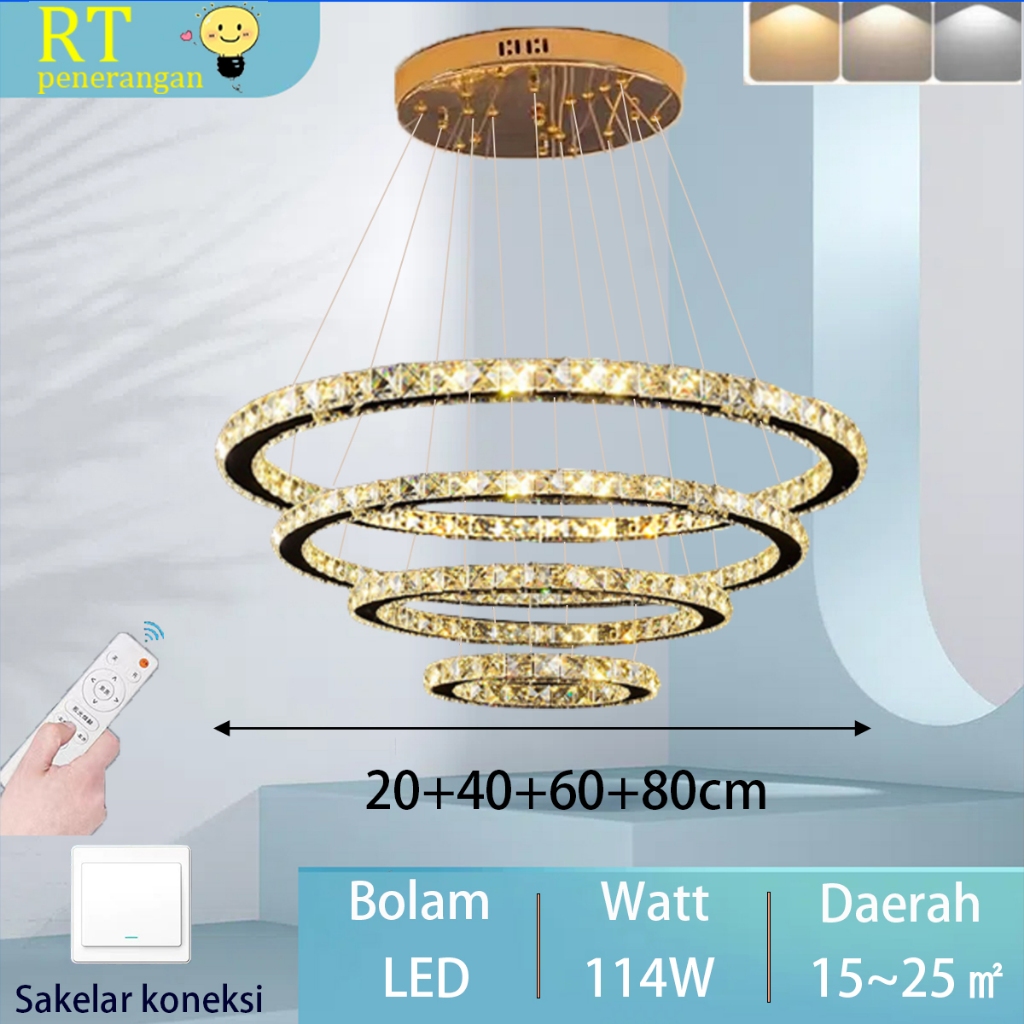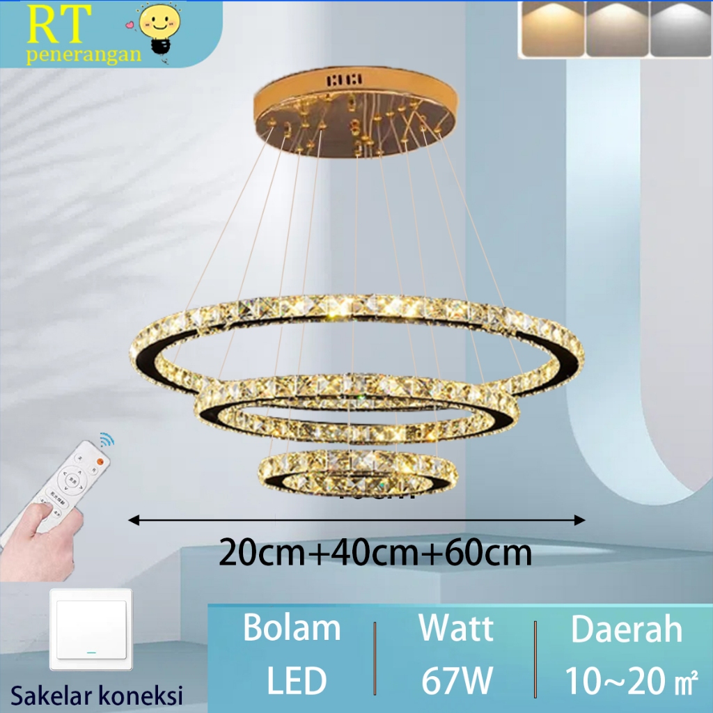 Lampu Gantung Emas Kristal Cahaya Mewah Lampu Gantung Ruang Tamu Minimalis Modern LED 3 Warna Lampu Kamar Tidur Lampu Gantung Restoran