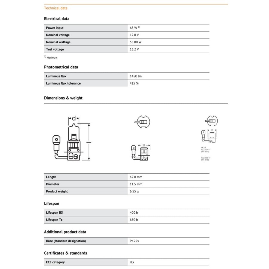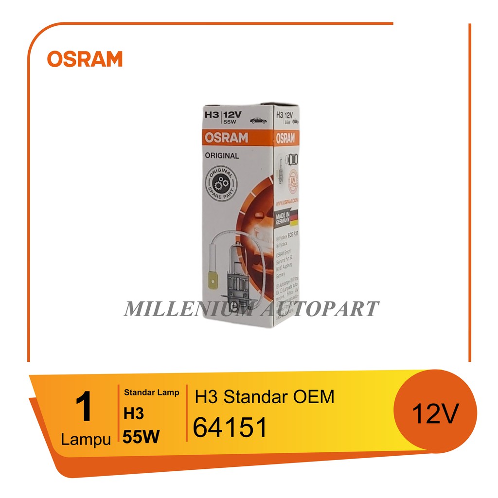 Lampu Halogen H3 55W 12V OSRAM Lampu Mobil Standard Original Tahan Lama