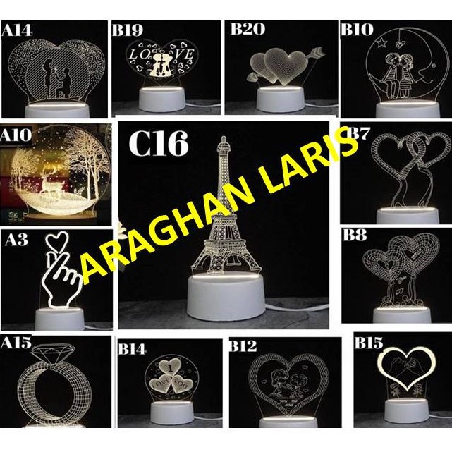 Lampu Hias 3D LED VALENTINE EIFFEL ,LOVE , couple , bulan , purnama , RUSA / Lampu tidur led LOVE