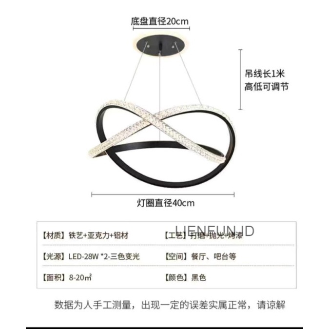 Lampu Hias Gantung + Remot Kontrol Dan Cahaya Peredupan 3 Warna / Lampu Gantung Minimalis / Lampu Gantung Ruang Tamu LIENFUN.ID 01974