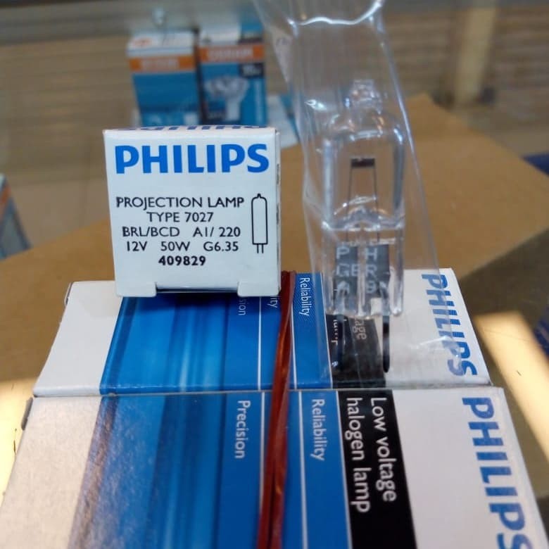 Lampu Hologen kacang Philips 12v 50w type 7027 G6,35 projection lamp