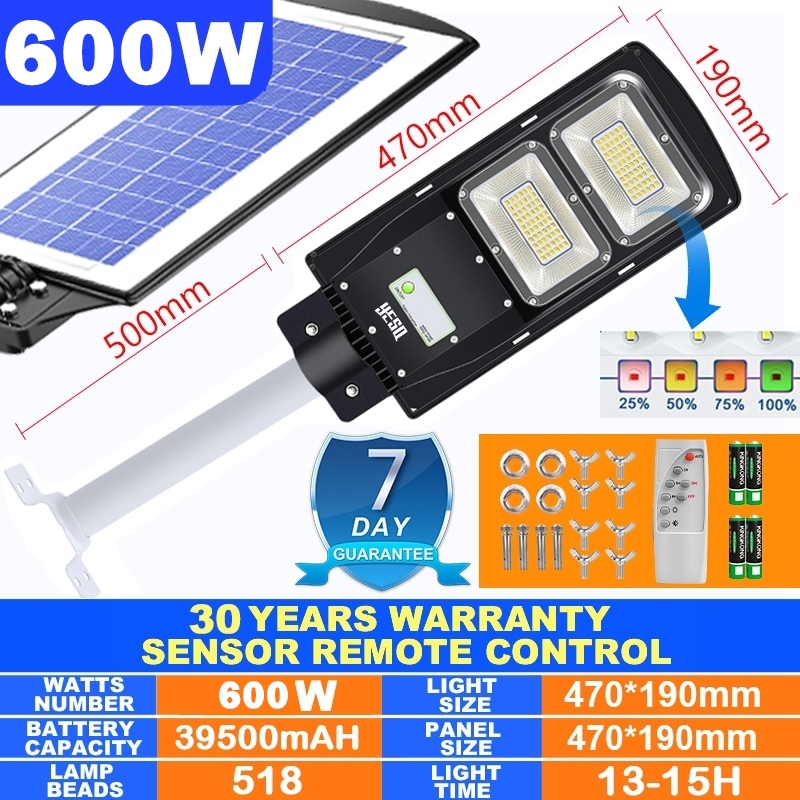 YESQ Lampu Jalan Tenaga Surya Matahari 1000W Solar Smart Sensor Street Cell Lights Tahan Air IP67 Outdoor Luar Ruangan 0 Biaya