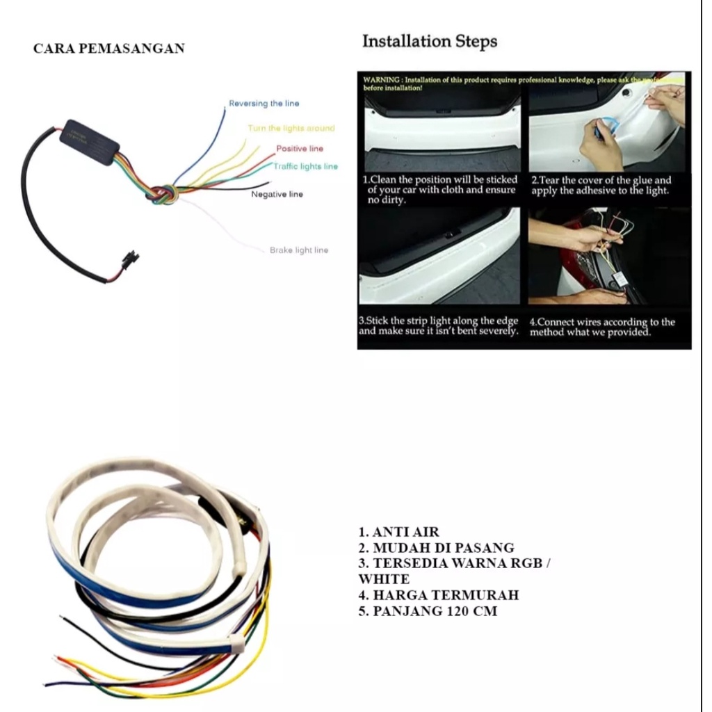 Lampu LED Bagasi Mobil/Lampu Rem RGB/Lampu Belakang Mobil/Bus/LED Strip Rainbow 12v