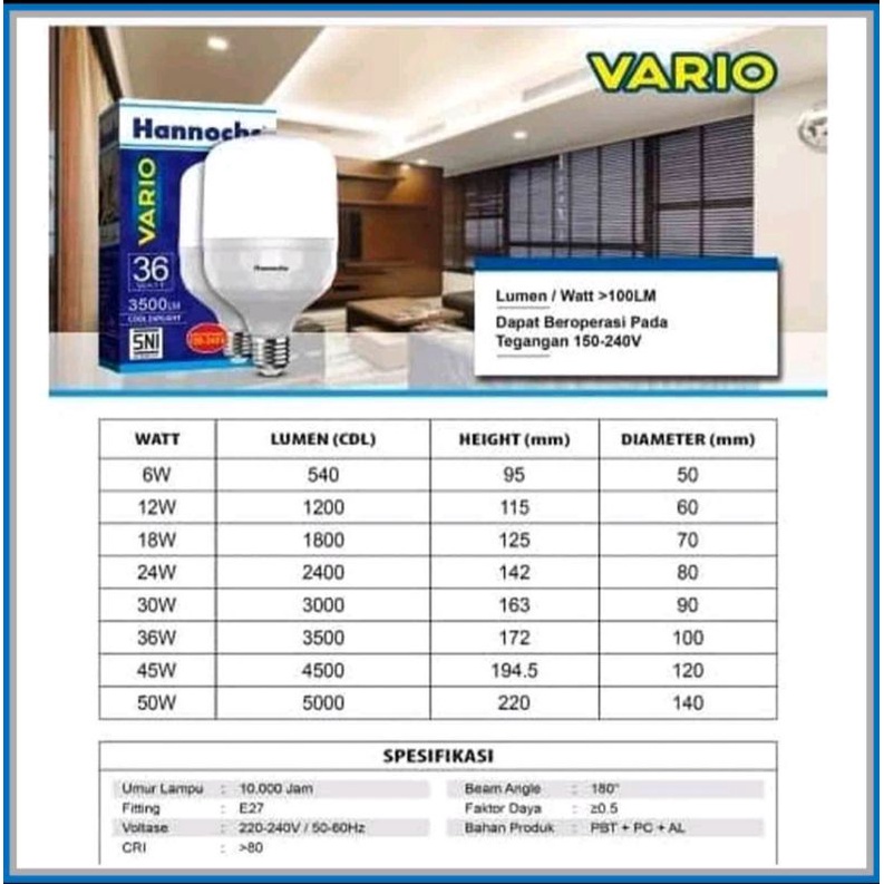 Lampu LED / Bohlam LED Hannochs VARIO 6 Watt / 12 Watt / 18 Watt - SNI Hannochs Murah