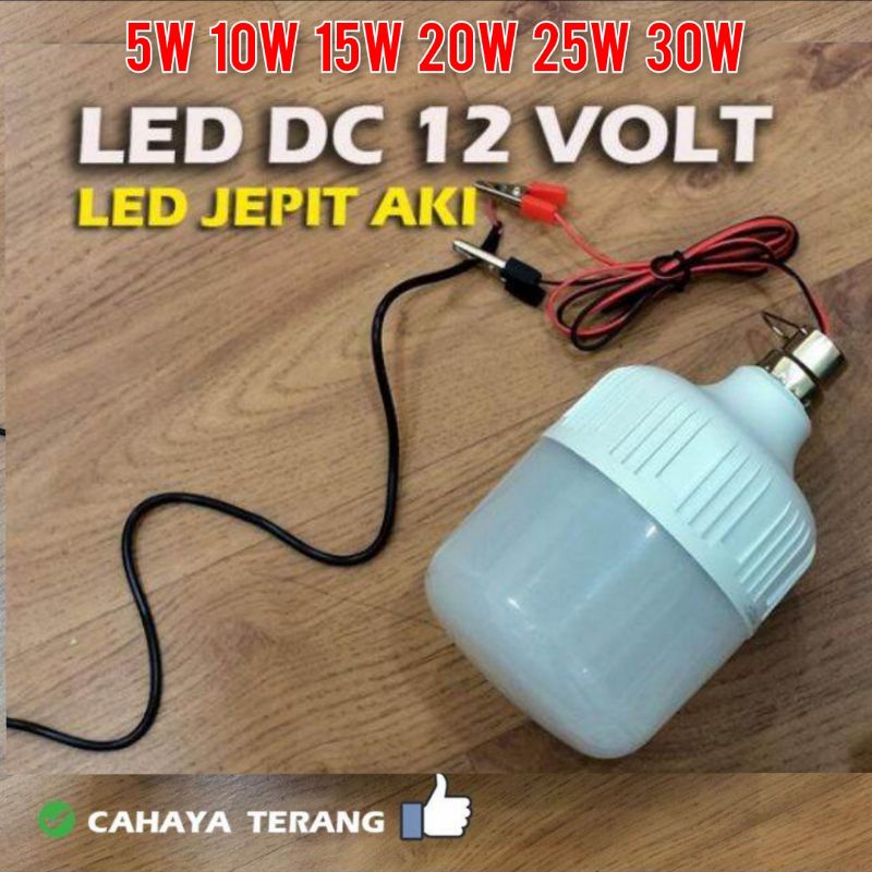 Lampu LED DC jepit Aki accu 12 Volt, Bohlam DC12v 5w,10w,15w,20w,25w,30watt -