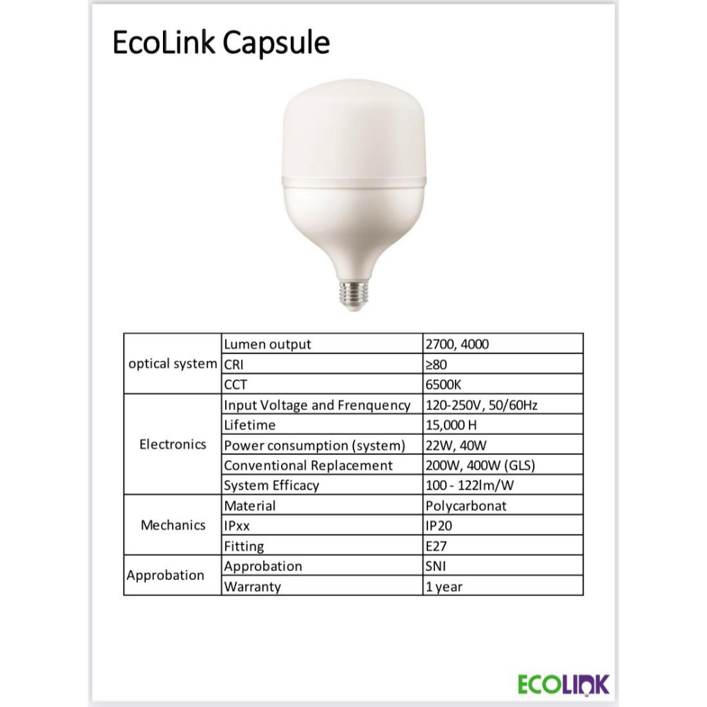 Lampu LED Ecolink Bohlam Bulb Kapsul Capsule 40 watt w 40w 40watt TAHAN LAMA SUPER TERANG GARANSI 1 TAHUN RESMI BUKTIKAN