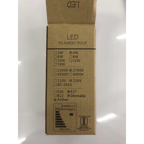 Lampu LED Filament Bulb Classic 4W ST64 2700K 220V E27 Dimmable Amber Warm White (Cahaya Kuning)