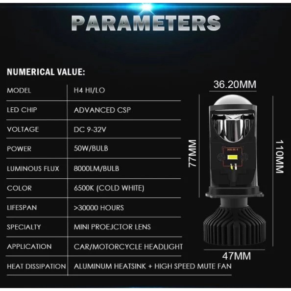 Lampu LED Headlamp Projie H4 Mini Projector Lens 50 Watt Lensa Mobil Motor Y6 Y6D Y9 L6K-H4 Headlight VINYX