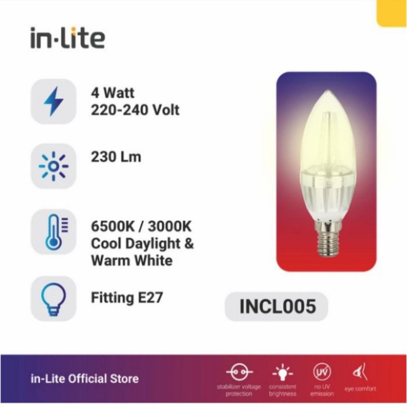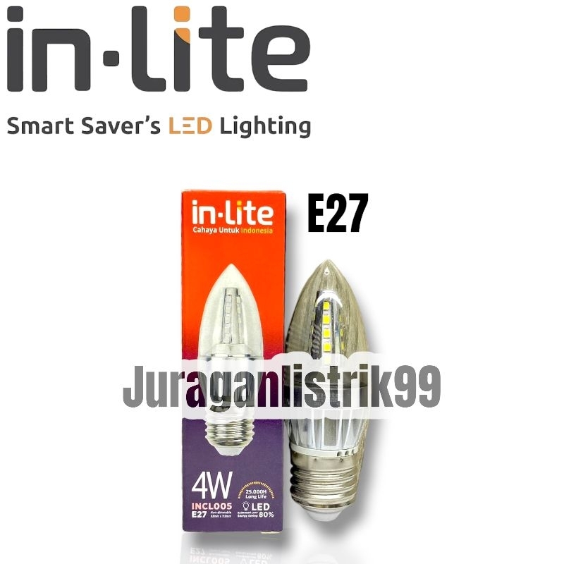 INLITE - LAMPU LED CANDLE INCL005 4WATT E27 E14 / LAMPU LED / LAMPU CANDLE / CANDLE LIGHT / BOHLAM CABE / LAMPU HIAS / LAMPU FILAMEN
