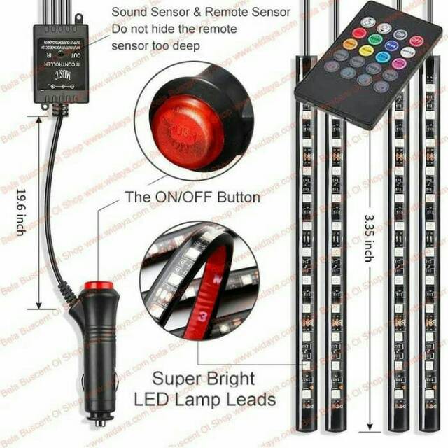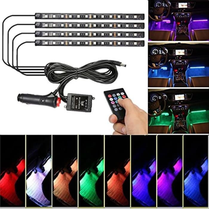 Lampu LED Kolong Dashboard Kabin Mobil Remote RGB Sesnor Musik Suara 48 LED