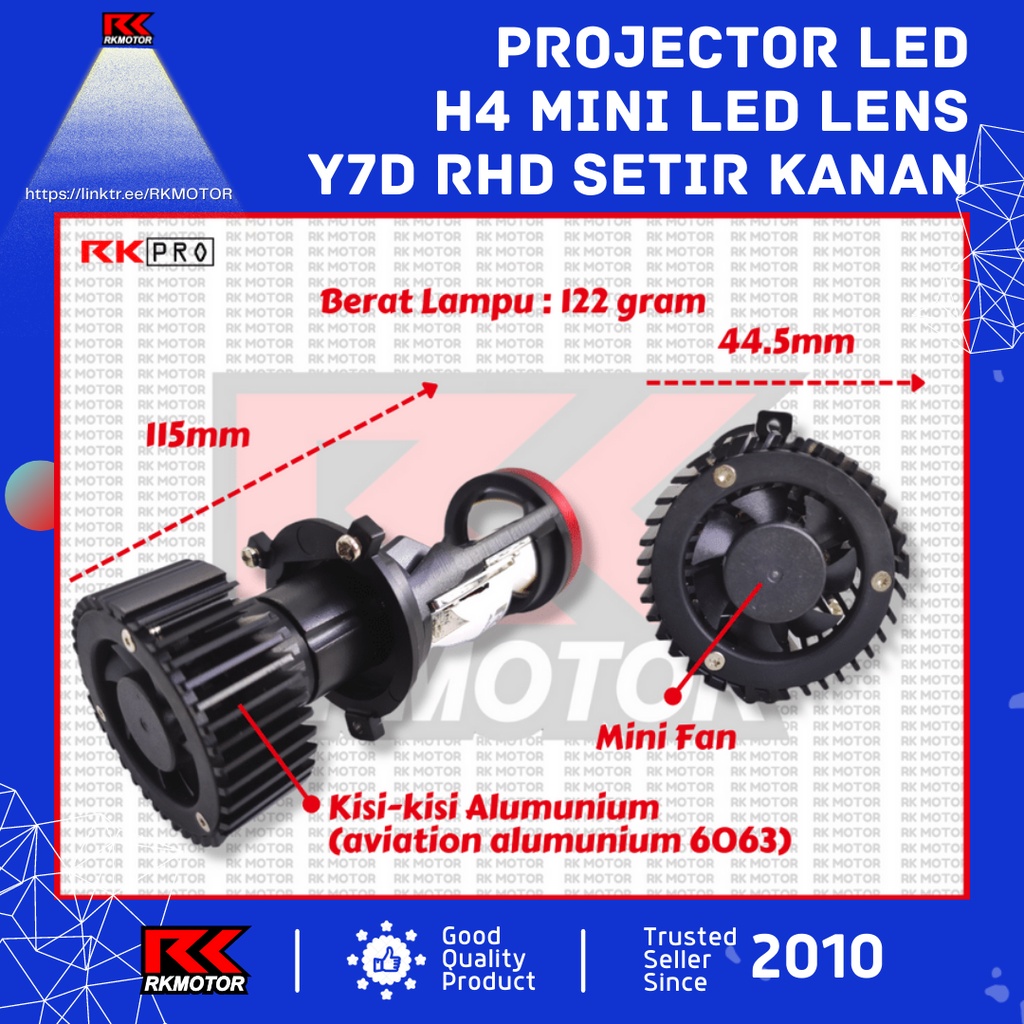 Lampu LED Mini Projie H4 50 Watt Y7D Cut Off RHD Setir Kanan