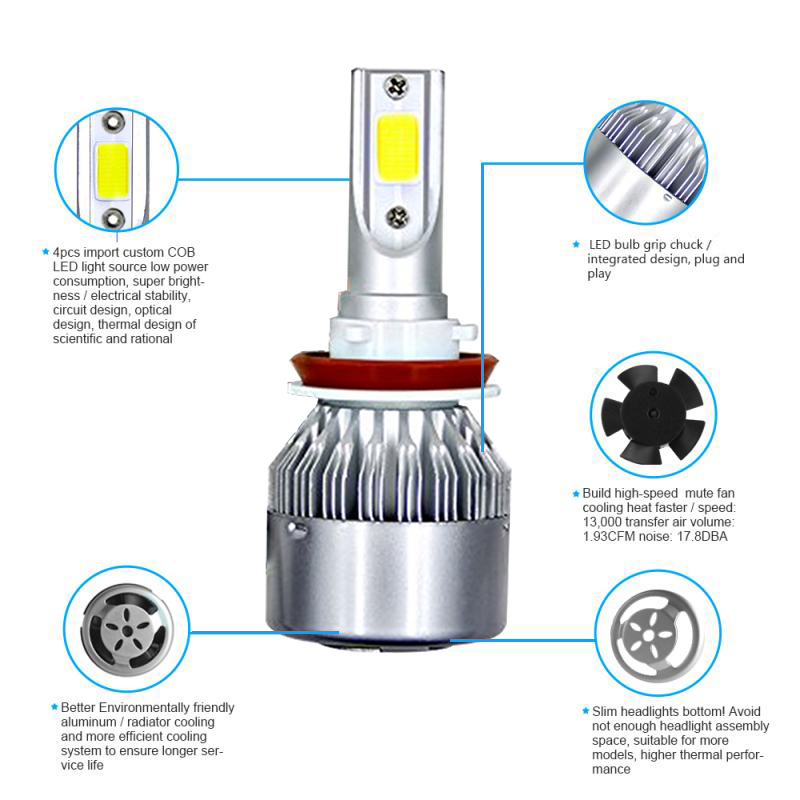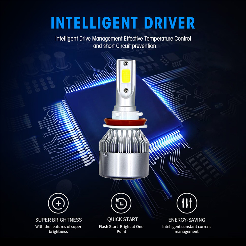 Lampu LED Mobil Headlight 1 pcs Lampu Utama C6 H4 9003 H11 H8 H9 H16 36W 3800LM 6000K Pure Light