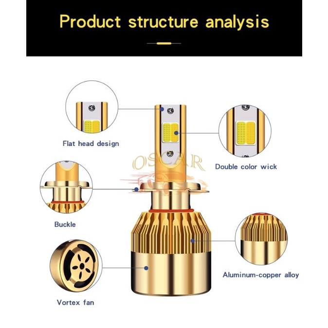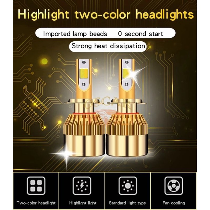 Lampu LED Mobil Headlight 2 pcs Lampu Utama Mobil LED COB Super Bright C6 H4 36W - 3800Lm Hi Lo 2 WARNA H4 H8 H9 H11 HB3 HB4 H1 H7 2 PCS