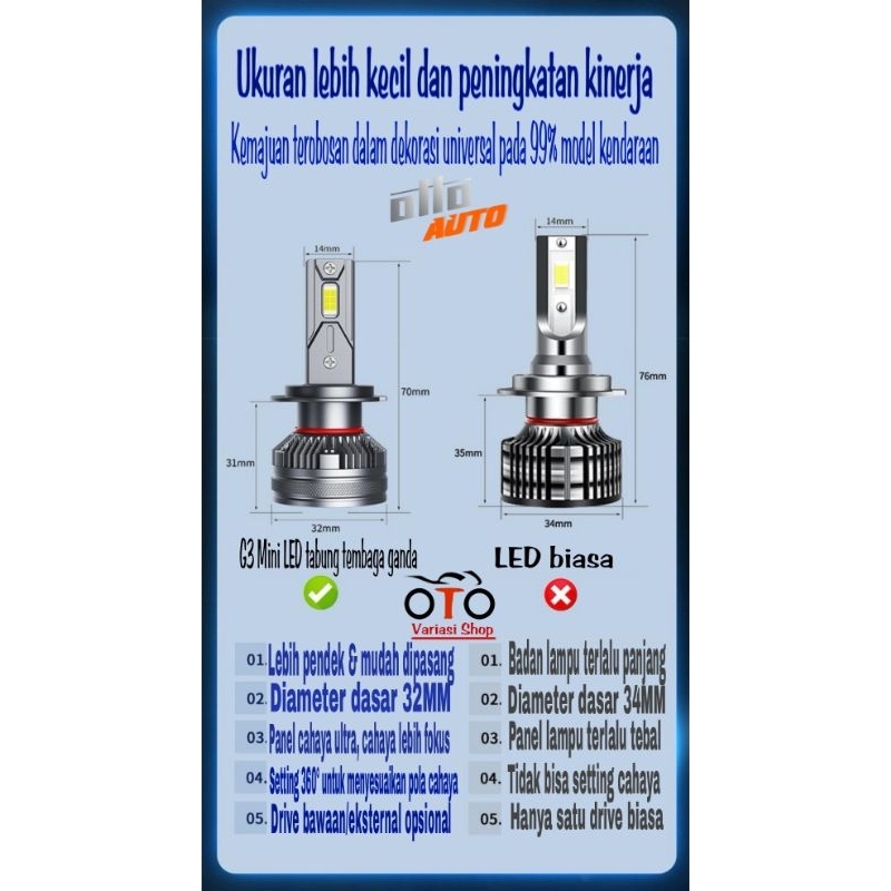 Lampu LED Mobil Soket H7 G3 MINI 55W Lampu Kabut Warna Putih