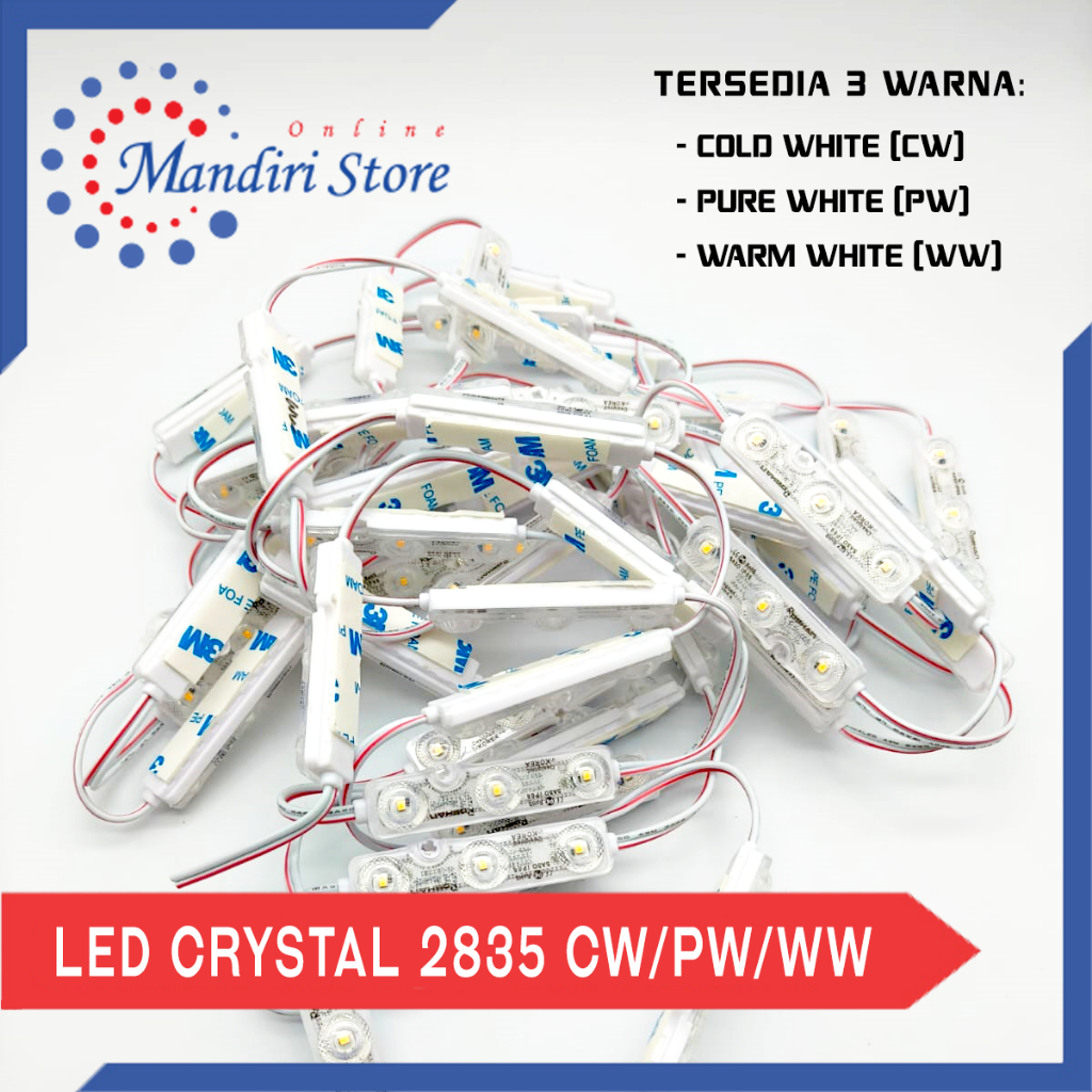 Lampu LED Modul 3 Mata Roshan Crystal [2835] 1.2 Watt 12 Volt | Cold White Pure White Warm White