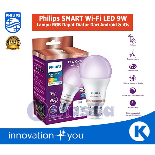 Lampu LED Philips Smart WIFI Tunable White & RGB 16Juta Warna 9Watt 9W - Philips LED Smart Wifi
