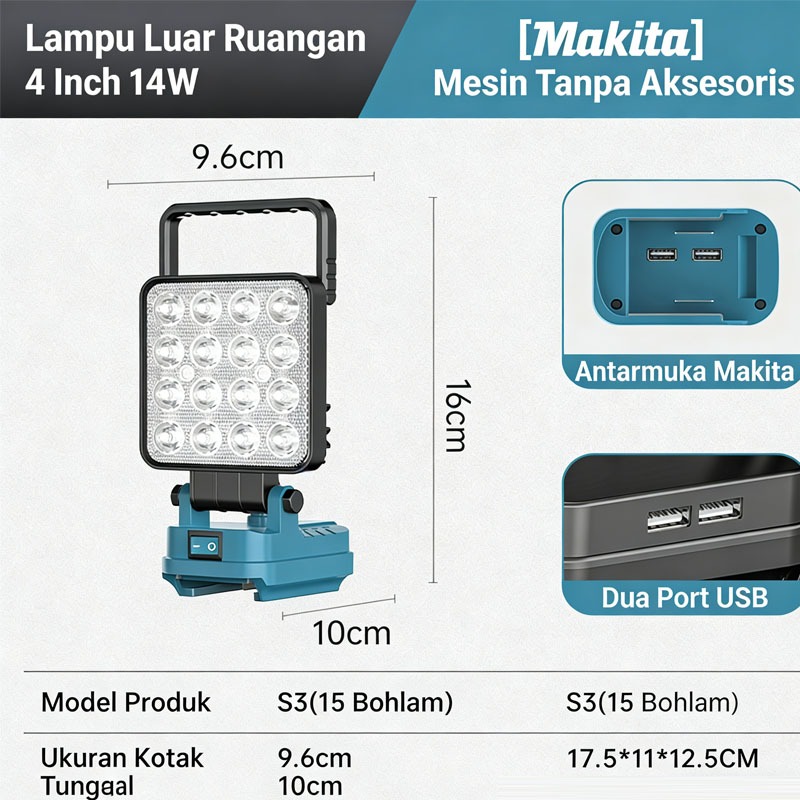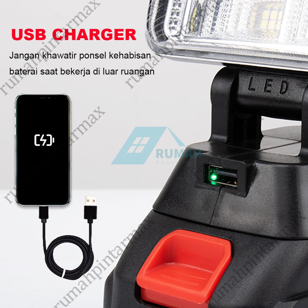Lampu LED Portable Lamp Baterai 21V 48VF Cahaya Putih Terang