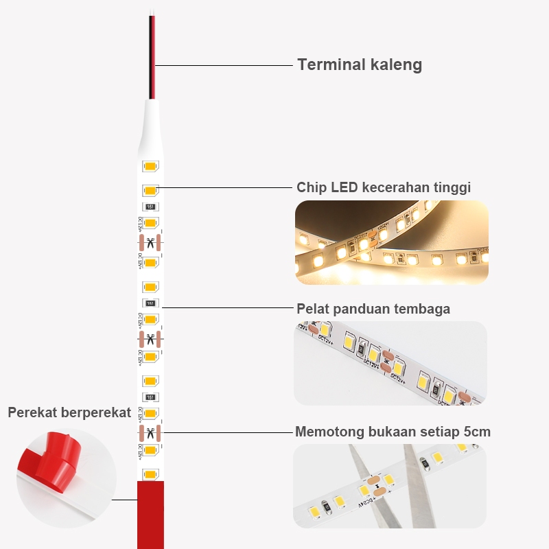 Lampu LED STRIP 120 LED 2835 Indoor IP 33 SMD12V PUTIH/WARMWHITE 12V 5 Meter