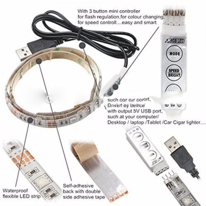 Lampu LED Strip 60 LED 1 Meter LED strip 1 Meter kabel USB DHW