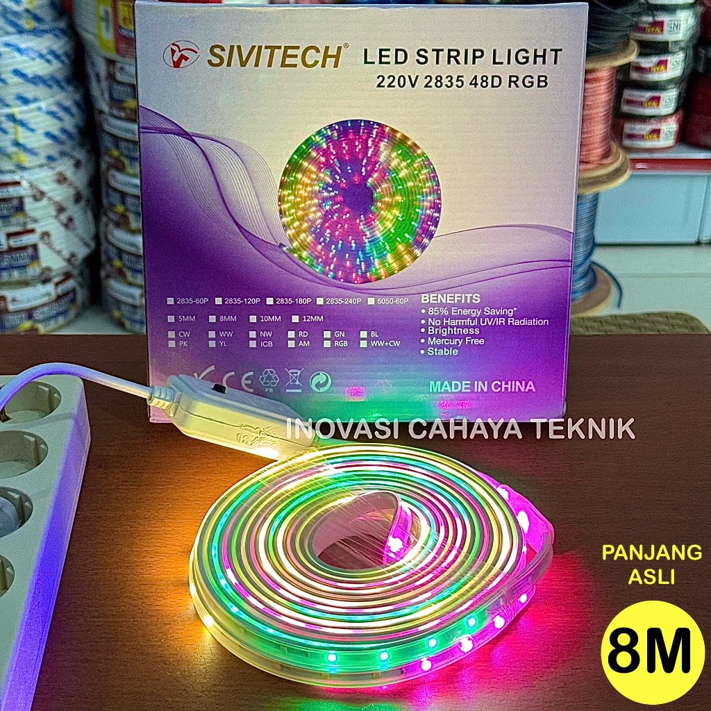 Lampu LED Strip Selang RGB 8M Full Anti air, Lampu Selang Warna Warni, LED Selang Sudah Termasuk Adaptornya