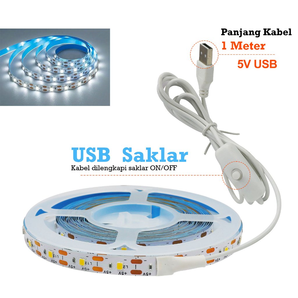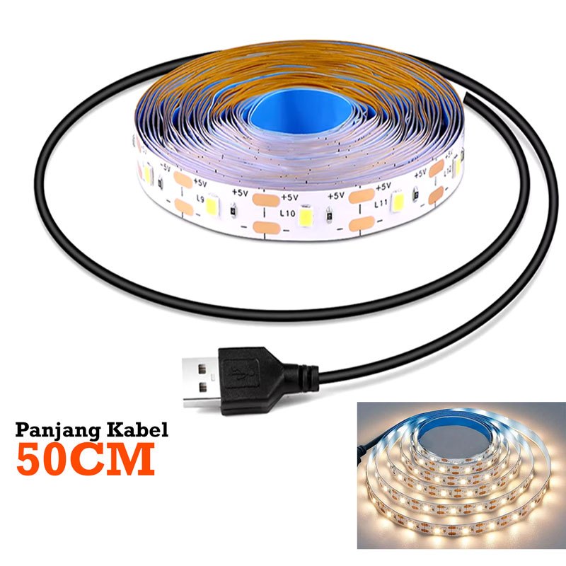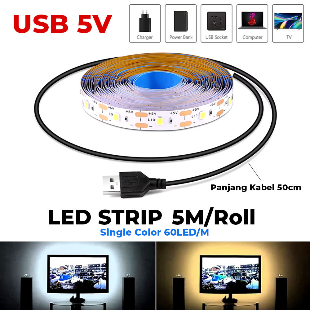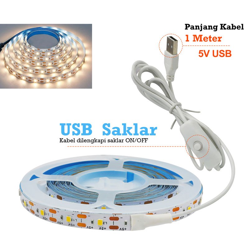 Lampu LED Strip USB DC 5V Putih White Warm White 1M, 2M, 3M, 4M, 5M SMD 2835 Flexible LED TV Backlight Background Lighting