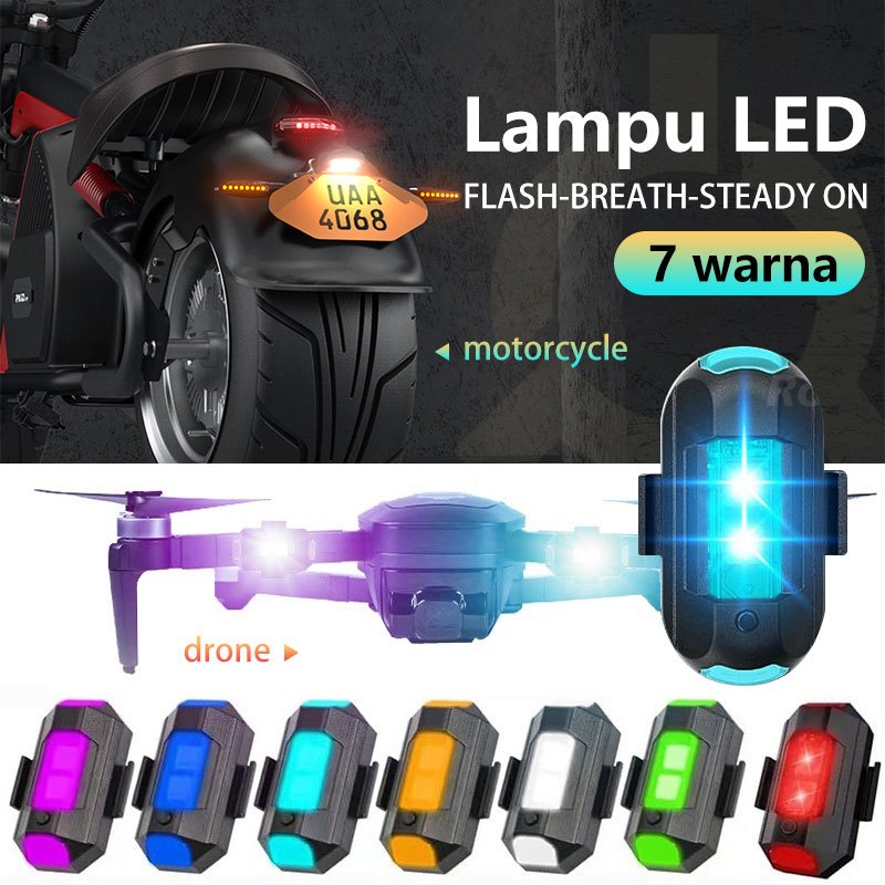 Lampu LED pesawat Lampu Strobo LED 7 Warna Universal Anti TabraKan Untuk Motor/sepeda/drone/pesawat Multi Mode Dengan Port Charger USB Lampu LED Kedip Aircraft Anti Air Lampu LED Model Pesawat lampu kedip pesawat