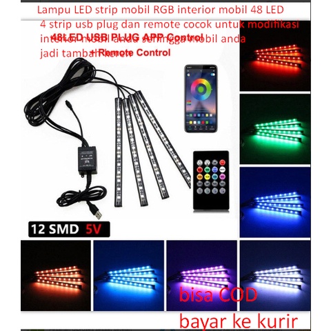 Lampu LED strip mobil RGB interior mobil 48 LED 4 strip usb plug dan remote cocok untuk modifikasi interior mobil anda sehingga mobil anda jadi tambah keren