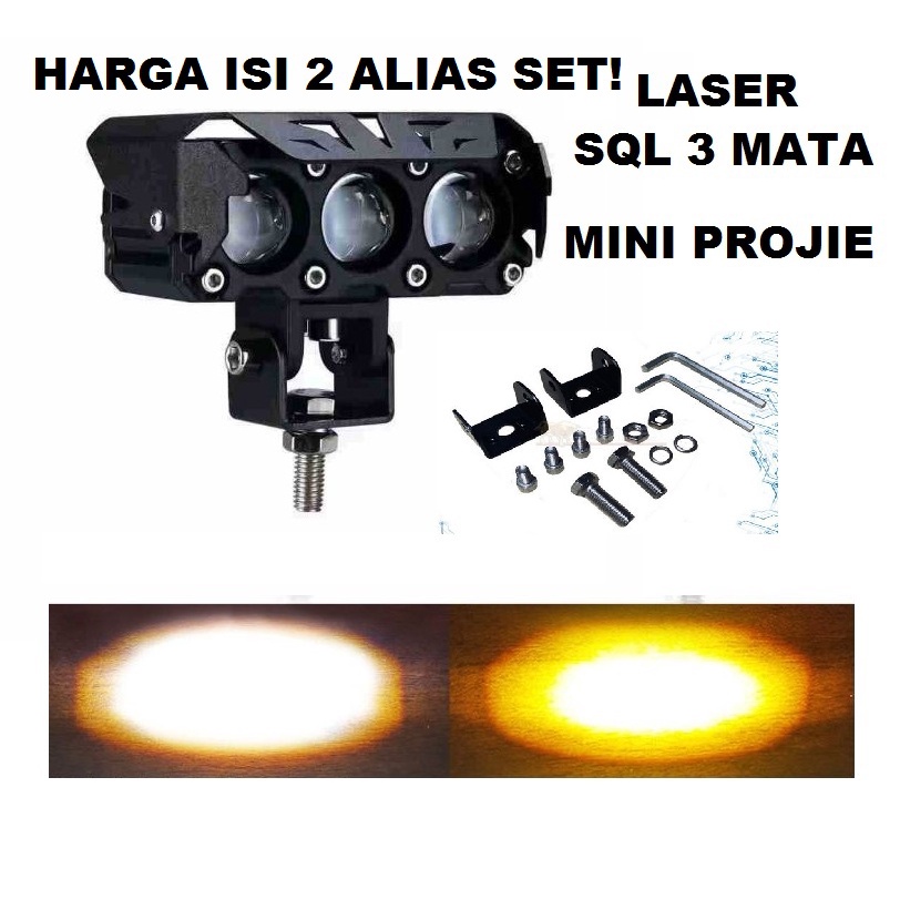 Lampu LED tembak LASER SQL 3 MATA foglamp mini projie 60 watt warna 4D