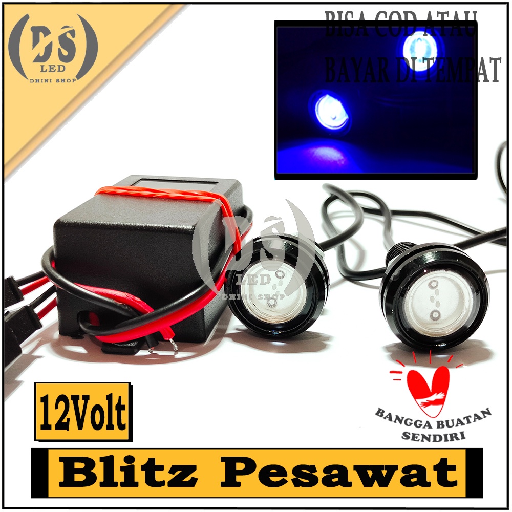 Lampu Led Blitz Pesawat 12v BIRU / Lampu Blitz Kedip Pesawat 12v- BIRU