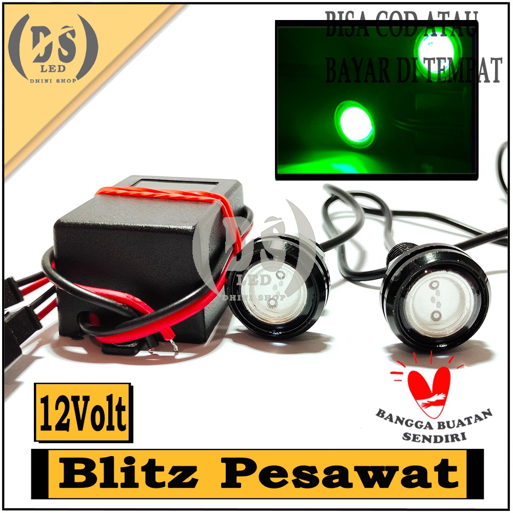 Lampu Led Blitz Pesawat 12v HIJAU / Lampu Blitz Kedip Pesawat 12v - HIJAU